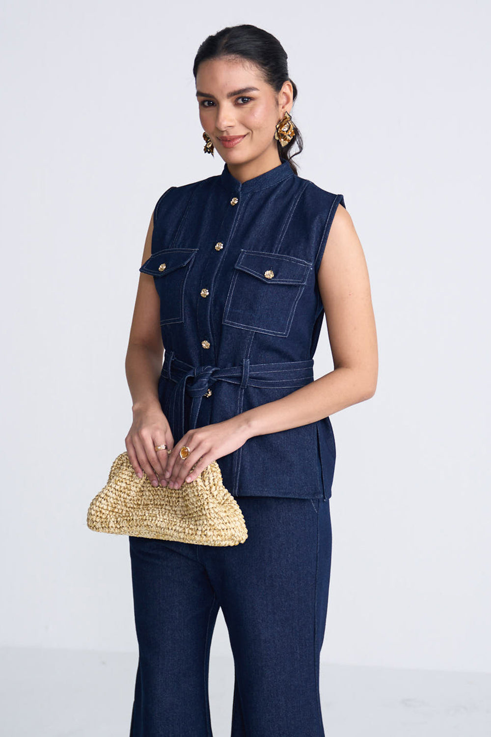 Our fresh bejewelled denim coord is perfect for the winters. Wear it with a white skive underneath or put on a fur jacket and you're good to go!.
