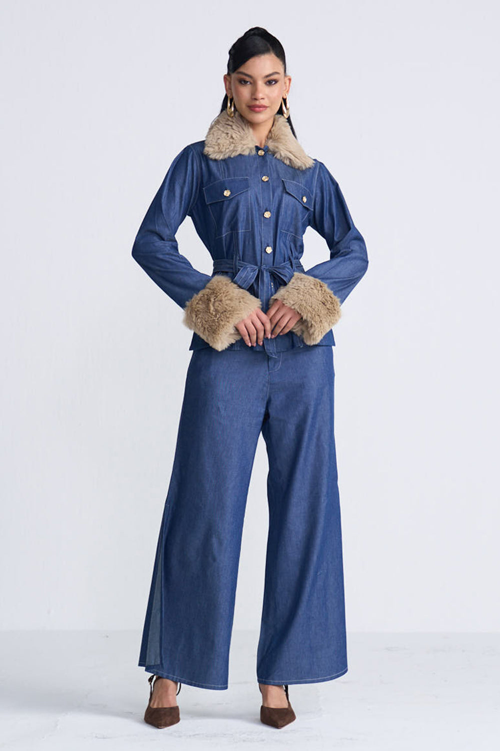 You loved our denim and our fur so we made them one! Enjoy our evi coord in its soft blue lined with luxury fur.