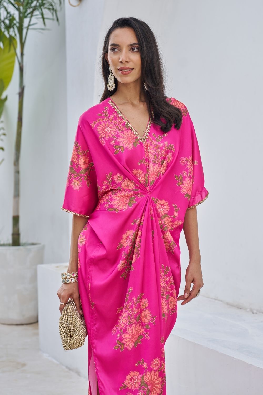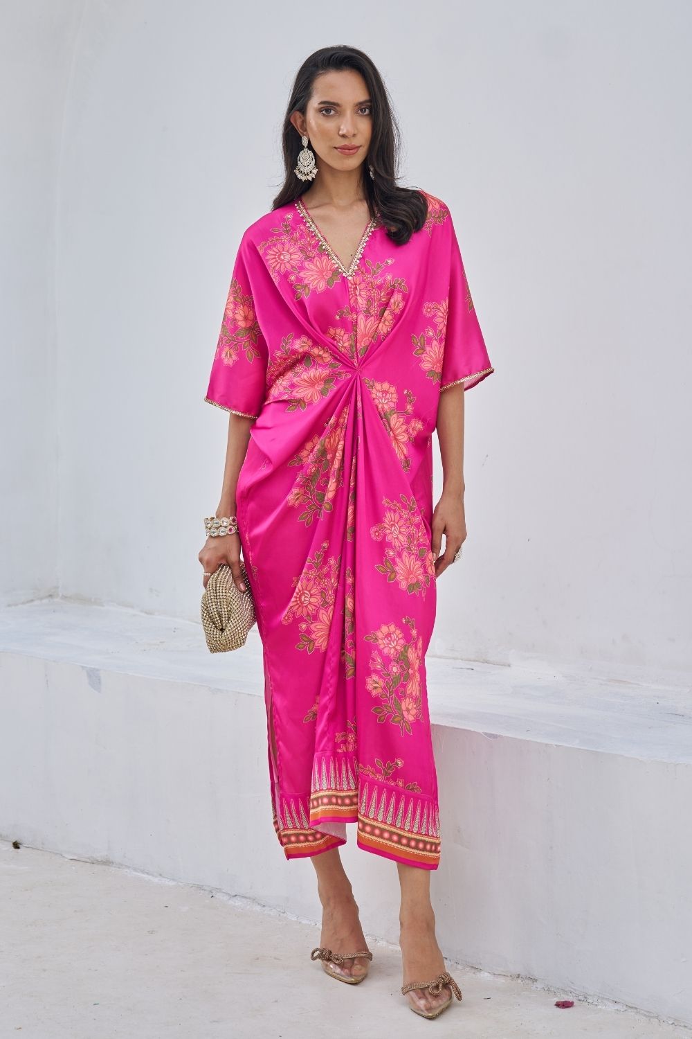The Ihira Kaftan blends contemporary style with traditional charm, featuring intricate handwork on the neckline and sleeves. Perfect for festive occasions, it adds a refined and elegant touch to your wardrobe, making it an essential piece for the season.
