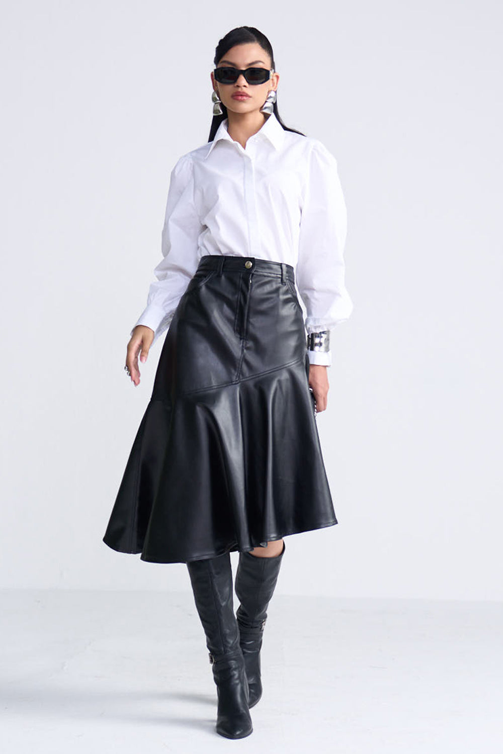 You loved our Sylvie skirt and we've got it back for you. This time in black leather to add more versatility and attitude. The skirt has a zip and tie up button on the front.